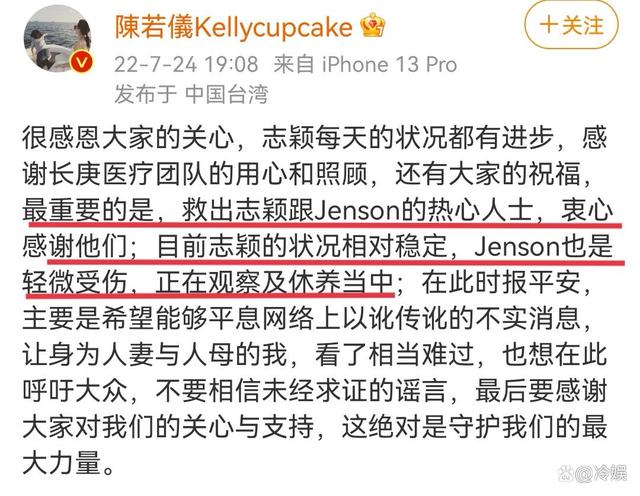不过,记者会的回应也已经说明具体的情况,正如林志颖妻子陈若仪所说,希望网上的不实消息可以平息,希望林志颖早日康复,经历磨难后浴火重生,他的福气在后头!