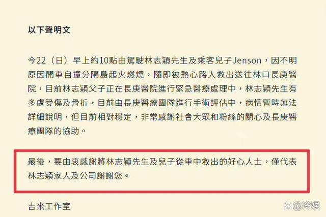 所以林志颖的家人非常感谢好心人,多次提出要当面致谢,吉米工作室、林志颖弟弟、妈妈以及陈若仪均单独提到了好心人,表示将花百万感谢恩人。
