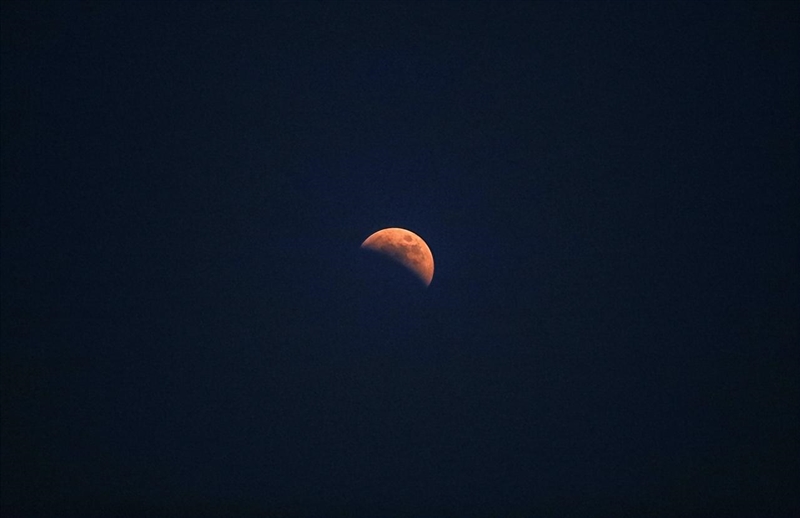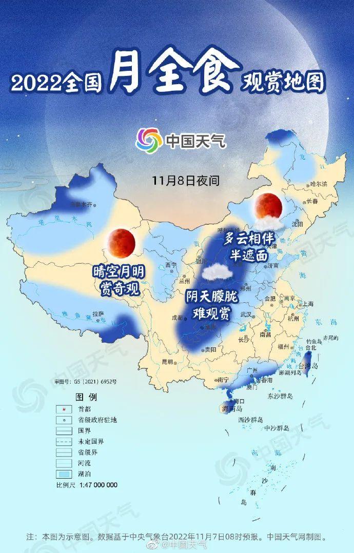 天文预报显示,这次月全食始于北京时间11月8日16时00分,此时月球开始稍微阴暗(半影食始);