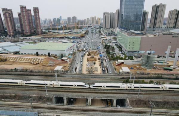 目前,新合肥西站站区涉铁市政道路四里河路工程正在进行管线迁改、桥梁桩基、承台施工。下一步,将进行新一轮交通导改,进入桥梁上部结构施工新阶段,意味着一座新高架即将腾空而起。