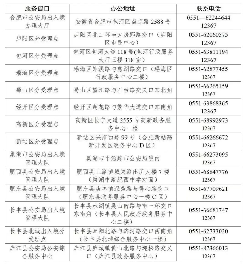答:可以合肥在全市各公安出入境业务受理点就近办理。