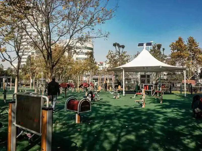 于杏花公园北侧,还有一处体育健身中心,趁着晚风带上装备,和好友们来一场酣畅淋漓的运动较量!除了健身区、篮球区外,这里还有一处适合儿童的攀爬区,不失为解放家长双手的好去处!
