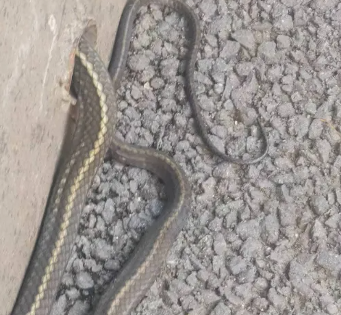 近日,家住包河区的刘女士在自家小区里发现一条蛇。从照片和视频中可以看到,这是一条长约一米多的、灰金色花纹的蛇,它正在从围墙的洞中努力地向外爬着。“吓死我了,旁边是小学,孩子们看到了也会被吓到吧。”刘女