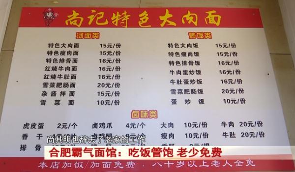 在合肥市政务区有这样一家面馆,面馆里有面有饭,生意也很不错,面馆有个“店规”,拟定人就是老板自己,目前为止已经执行了十多年。“够吗?不够再来加。”这是尚其明对每一位来吃饭的顾客说的话,在这家面馆,不论