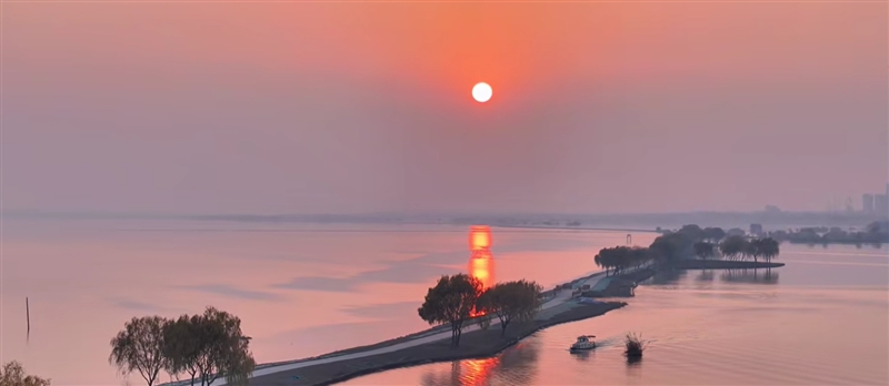 夕阳西下,湖面金光粼粼,一条长堤蜿蜒在巢湖的碧波之中,如诗如画,这就是合肥最新网红打卡地——咏芳堤。今年假期,横卧巢湖的咏芳堤火爆“出圈”。这条全长约9.31公里的生态长堤,从派河入湖口蜿蜒向东,直抵