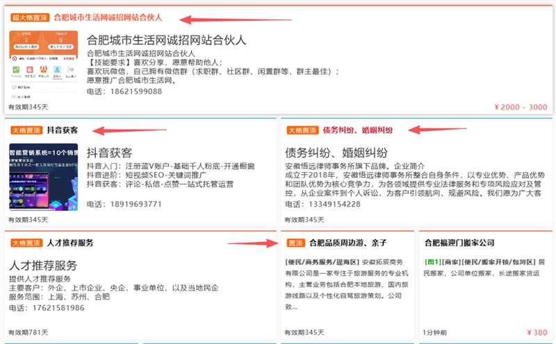 置顶信息始终显示在第一页,让您的信息得到更多展现机会。用户搜索信息时置顶信息也会优先显示。