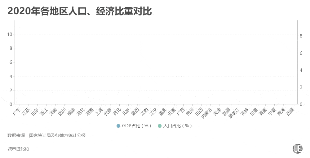 经济第二大省江苏(占全国总量的10.11%),人口总量排在全国第四,二者占比相差达到4.11%,差值为全国之最;