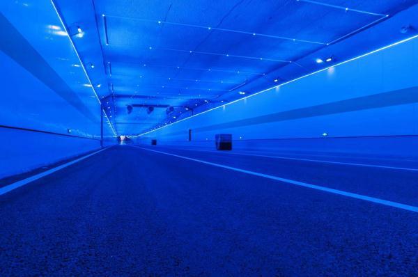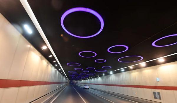项目全线共有五大重要节点性工程,其中备受关注的庐州大道地下隧道工程目前已基本建成。记者进入隧道提前一览风景,见到整条隧道以蓝色为主基调,车子行驶在隧道里宛如在蔚蓝的海底遨游,双向六车道的道路笔直宽阔。在隧道中间顶部位置,有一段采取动态投影设计,通过画面展示和变化,可以体现合肥美丽风景和科创特色。