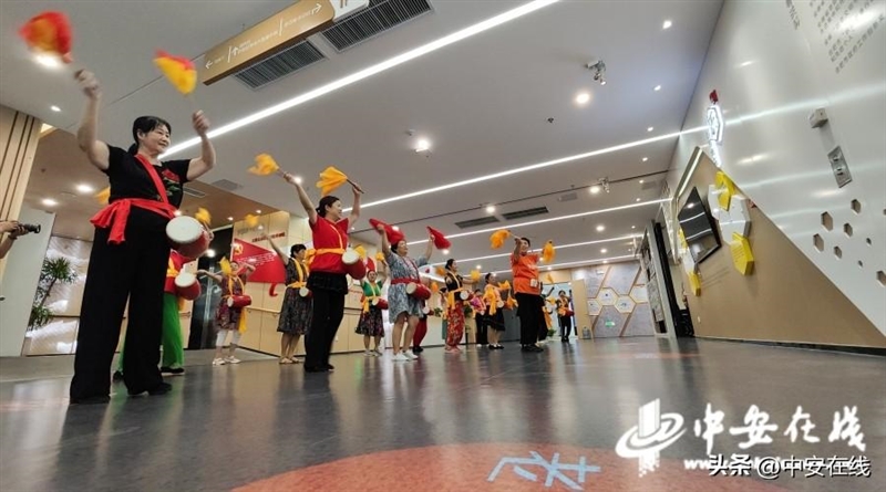 还未走进庐阳区养老服务指导中心,在门口处便能听见一阵欢快的腰鼓声。“下一段,我们的动作是划八字,身子向右转360度。”蔡玉林正带领她的15名学生排练着腰鼓表演。