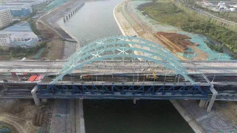 近日,记者从合肥市重点局项目部获悉,全省首座公轨合建双层钢桁架特大拱桥即将通车,引江济淮繁华大道桥主体工程已全部完工,计划10月迎来放行。