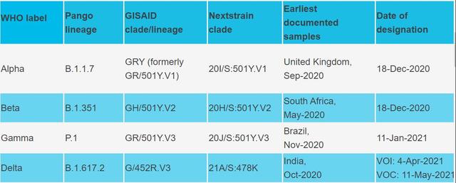 世卫组织已为“需关注的变异株”和“待观察的变异株”命名,如在英国首先发现的B.1.1.7变异株被命名为“Alpha”。