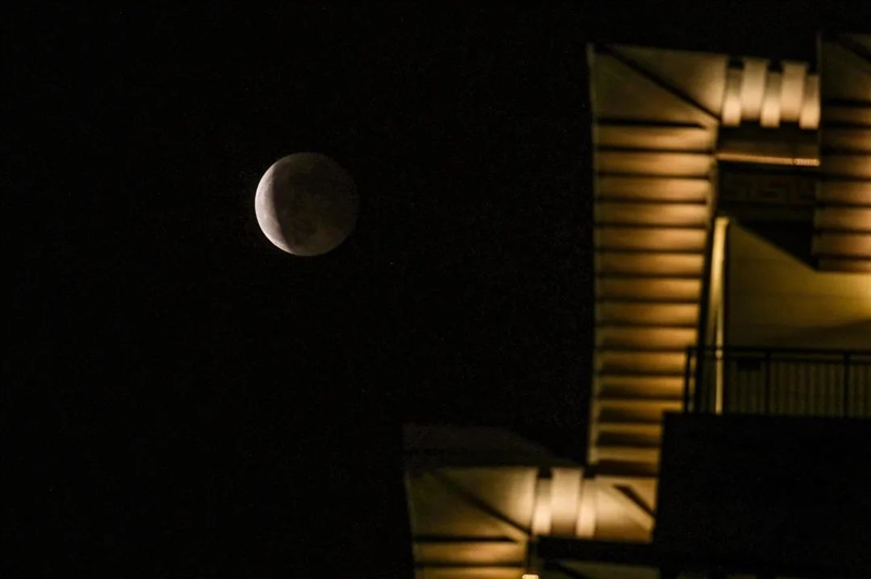 天文预报显示,这次月全食始于北京时间11月8日16时00分,此时月球开始稍微阴暗(半影食始);