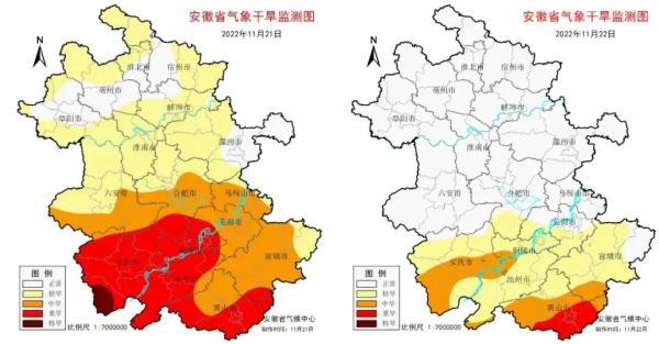 11月21日(左)和22日(右)气象干旱监测