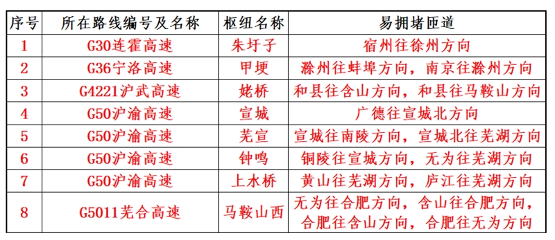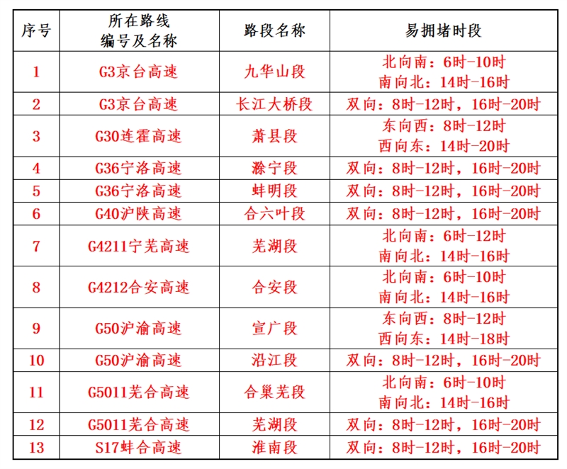 1.建议公众出行前规划好出行时间和线路,错峰错时出行,及时了解流量较大路段的路况信息,发现拥堵时可选择其他高速公路或利用并行普通干线公路进行绕行。