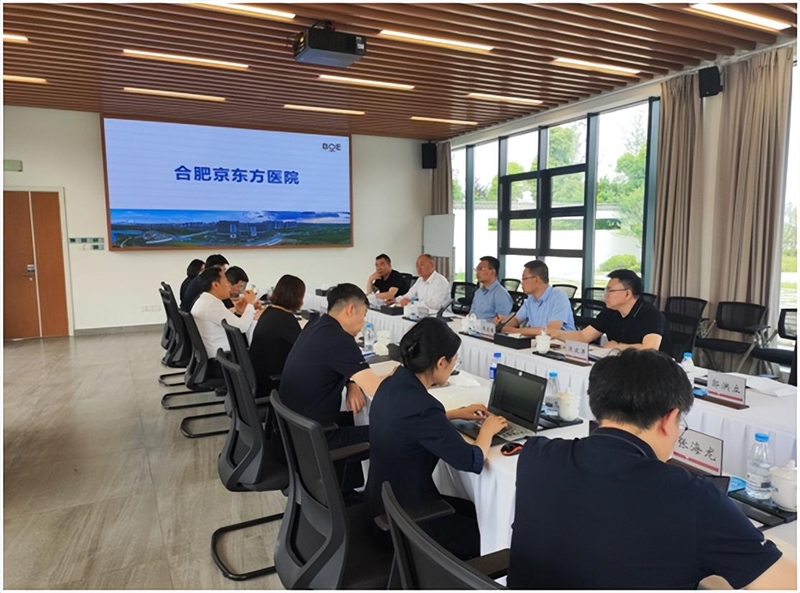 在京东方医院,陈纪强一行实地查看医院建设、运营管理、设备设施、医疗团队等有关情况,听取医院相关负责人讲解医院基本情况、发展历程及项目推进建议,深入探讨智慧医工“从半导体到物联网,从制造业到服务业,从重资产到轻资产”管理模式。
