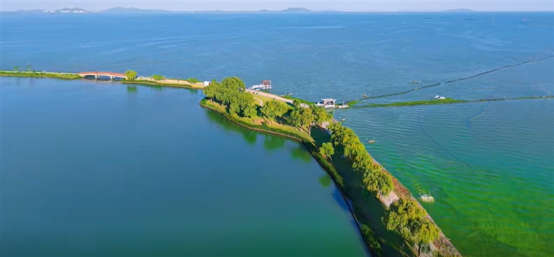 夕阳西下,湖面金光粼粼,一条长堤蜿蜒在巢湖的碧波之中,如诗如画,这就是合肥最新网红打卡地——咏芳堤。今年假期,横卧巢湖的咏芳堤火爆“出圈”。这条全长约9.31公里的生态长堤,从派河入湖口蜿蜒向东,直抵