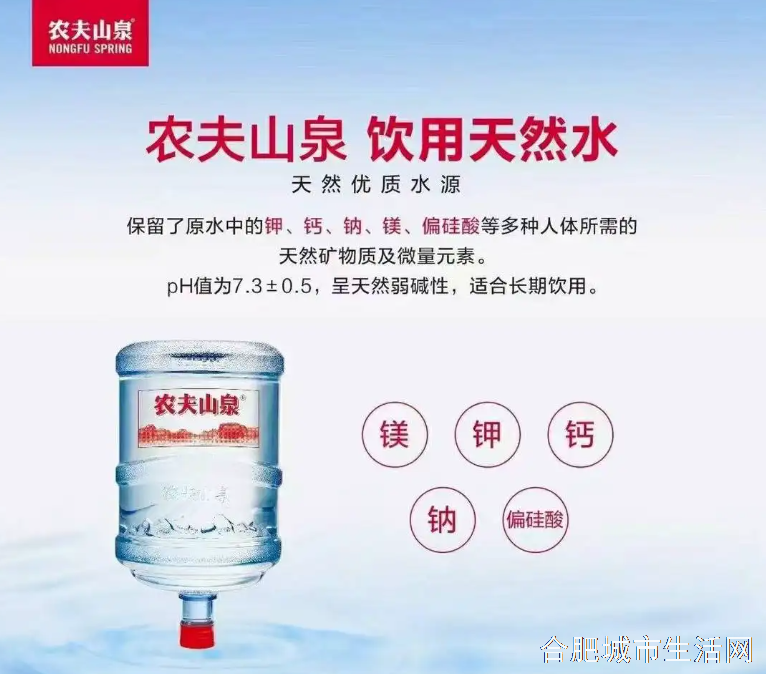 农夫山泉、皖健、刮水山泉、野领山泉桶装水配送。来电订水优惠大促!!!合肥泉之饮桶装水经营,是一家专业桶装水配送,具有完善的配送系统,拥有良好的口碑,桶装水配送业务,品质有保障。经营多年,各种桶装水、瓶装水齐全。送水及时、快速高效。