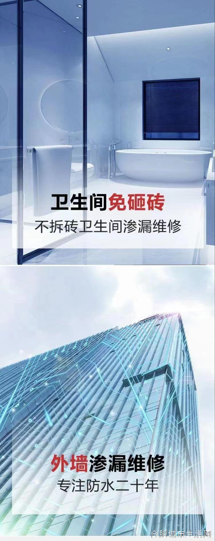 《防水补漏》楼房。平台。阳台。天沟。厨房。地下室。房屋顶。飘窗。卫生间漏水免敲墙,免砸砖,快速维修。钢结构漏水维修。阳光房漏水维修。外墙渗水维修。厂房漏水维修。高压注浆。诚信服务。价格便宜。免费上门勘察。本人专注防水20年。承接各地区大小防水工程。